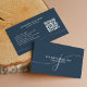 Cartão De Visita Código QR do Monograma Azul de Script Simples Eleg
