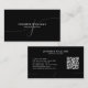 Cartão De Visita Código QR do Monograma de Script Branco Preto Simp