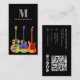 Músicos de guitarra, professor de música, código QR e cartão de visita de mídia social com modelo de fácil uso para detalhes de contato, código QR do site e ícones de mídia social perfeitos para redes de negócios. Violão acústico psíquico, guitarra semissótica e guitarra em cores brilhantes num fundo preto completo com monograma personalizado. Legal músicos modernos design de cartão de visita para guitarristas, músicos profissionais, artistas e professores de música. Arte original da artista Catherine Sweetman