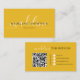 Mostarda Amarelo de Caligrafia Script QR Cartão de visita