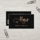Fundo preto. A palavra Hair escrita com um guião alfanumérico à mão na moda em rosa dourado. Voltar: Personalize e adicione seu nome, título, número de telefone, email e endereço do site, QR-code ao seu próprio site ou conta de mídia social.