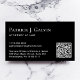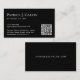 Cartão de visita preto moderno com seu nome em uma fonte elegante de serifa branca e seu título e informações de contato em tipografia branca simples e limpa. Insira um endereço de URL para criar um código de QR digitalizável vinculado ao seu site, perfis de mídia social ou qualquer outra plataforma que mostre seu trabalho, fazer fácil para clientes e clientes explorar sua expertise. No verso, personalize o texto adicional ou deixe o vazio.