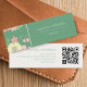 Esses cartões de visitas contemporâneos de código QR com fundo floral colorido em verde, rosa e amarelo, são na moda e brincalhões. O design inclui um conjunto moderno de fontes que combinam fundo verde e marfim no verso. Faça uma impressão duradoura com estas cartas retrorreflectoras divertidas e chicas.
