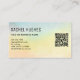 Este cartão de visita floral é decorado com um girassol de cor amarela num fundo colorido. Facilmente personalizável com seus detalhes e código QR. Use a Ferramenta Design para alterar o tamanho, o estilo ou a cor do texto. Porque nós criamos a nossa trabalho de arte, você não encontrará esta imagem exata de outros designers. Original Watercolor © Michele Davies.