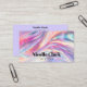 Este cartão de visita moderno e iridescente apresenta seu nome ou nome comercial definido em tipografia serif contemporânea contra um fundo holográfico de tendência. Uma forma excelente de mostrar que você está ciente das novas tendências e se destaca na mente de seus clientes. Perfeito para qualquer profissional como um maquiador, cabeleireiro, cabeleireiro, preguiçoso, dono de salão de beleza, esteticista e muito mais. Você pode personalizar a frente com seu nome, título ou endereço de site, e incluir detalhes comerciais como endereço de site, contas de mídia social, ícones de mídia social (Facebook, Instagram), um código QR digitalizável e texto adicional como "conectar-se conosco" ou "digitalizar para marcar compromissos" na parte traseira.