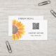 Este cartão de visita moderno e na moda é decorado com um girassol amarelo. Facilmente personalizável com seus detalhes e código QR. Use a Ferramenta Design para alterar o tamanho, o estilo ou a cor do texto. Porque nós criamos a nossa trabalho de arte, você não encontrará esta imagem exata de outros designers. Original Watercolor © Michele Davies.
