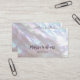 Este elegante cartão de visita de luxo apresenta uma iridescente mãe-de-pera design e um elegante roteiro manuscrito. No verso está um código qr digitalizável e um modelo personalizado para nome, endereço e sociais. Este cartão de visita de vidro profissional é perfeito para salão, maquiagem, joias e muito mais.