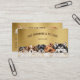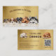 Um cartão de visita super fofo para festas de animais de estimação, cuidados para animais de estimação, adoção de animais de estimação, hotéis para animais de estimação, caminhoneiros para cães, treinadores de cães, creches para cães e cachorros e veterinários. Gráficos bonitos de cão de espreita contra um fundo metálico de ouro escovado. Adicione o URL do seu site de negócios no verso do cartão que atualizará o código QR (ou exclua se não for necessário). Personalize seu nome e detalhes comerciais editando o modelo de texto. Os ícones das mídias sociais podem ser excluídos se não forem necessários - clique em personalizar/personalizar para fazer isso.