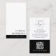Cartões de visitas verticais modernos com seu nome e título nos campos de modelo frontal e personalizável para suas informações de contato, logotipo e código QR no verso. Cores pretas e brancas ou personalizadas. Você pode alterar fontes e cores, mover e redimensionar elementos com a ferramenta design.