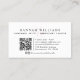 Cartão de visita de bordados moderno, elegante e profissional. Este design apresenta uma intrincada imagem de bordado em um fundo branco e limpo, complementado por duas linhas de texto na frente para seu nome e título ou slogan. A parte traseira da placa oferece personalização com um código QR para acesso instantâneo a seu site ou mídia social, juntamente com ícones para seus perfis de mídia social e detalhes de contato perfeitamente organizados, garantindo uma combinação perfeita de sofisticação e praticidade.
