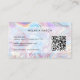 Cartão de Visita Único de Artista de Maquiagem Moderno Elegante Holográfico Mármore Pastel Código QR