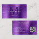 Cartão De Visita Código QR moderno - Monograma Roxo Metálico Bruto