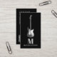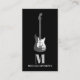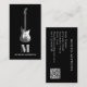 Violão elétrico de cinza com guarda branca de palhetas simples design num fundo preto com nome de monograma personalizado e código QR. Adicione seus próprios detalhes usando o modelo para criar um cartão de visita profissional. O design perfeito para guitarristas, músicos profissionais e professores de música. Arte original clássica simples e tipografia da artista Catherine Sweetman