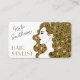 Cartão de visita elegante para cabelos com cores douradas e pretas. Personalize este modelo de cartão de negócios com seu nome, código qr e mídia social.