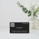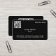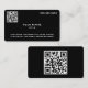 Seus cartões personalizados de código QR para sua empresa. Na moda e cartões de visitas simples executivos elegantes com código QR personalizável na frente e atrás. Clique em Personalizar para alterar a cor de fundo e tente colar com uma cor mais clara para que o scanner possa lê-la. GRATUITO GERADOR DE CÓDIGO QR www.qrcode-monkey.com Insira seu site, texto, número de telefone ou SMS no gerador e depois gere-o. Depois que você o tiver, clique com o botão direito do mouse e salve-o e carregue-o no cartão. Simples. Dê a seus clientes uma mensagem ou faça do seu cartão de visita um utilitário ou um botão de contato.