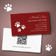 Código QR Pet Sitter red cartão de visita, com design de impressão de pata e tipografia branca e preta. Com texto personalizável, você pode adicionar suas próprias informações. A parte traseira tem um código QR onde você adiciona seu site. Excelente para adicionar um toque profissional à sua empresa de serviços para animais domésticos.