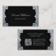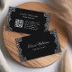 Cartão De Visita Código QR Prata Preto Antigo Script Ornamentado Vi