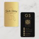 Elegante cartão de visita de um técnico de barra preto e ouro com um design de monograma moderno, layout personalizável e código QR para reserva instantânea. Perfeito para artistas lash, profissionais de beleza e donos de salões que querem um cartão de marca profissional, na moda e inspirado no luxo.