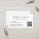 Cartão de visita profissional com seu nome em um script moderno de chic e seu título e informações de contato (como e-mail, números de telefone, nome firme e endereço de correspondência) em caracteres simples e limpos. Insira um endereço de URL para criar um código de QR digitalizável vinculado ao seu site, perfil de mídia social ou outra plataforma que mostre seu trabalho, fazer fácil para outros explorarem sua experiência. Personalize texto adicional na parte traseira ou deixe o vazio.