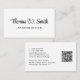 Cartão de visita profissional moderno com seu nome em um script na moda bold e seu título e informações de contato (como e-mail, números de telefone, nome firme e endereço de correspondência) em tipografia simples e limpa. Adicione o endereço de URL do seu site para criar um código de QR verificável conectado ao seu site, portfólio, perfil de mídia social ou qualquer outra plataforma que mostre seu trabalho, fazer fácil para clientes e clientes explorar sua expertise.