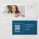Cartão De Visita Código QR profissional de foto simples azul