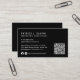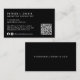 Cartão de visita preto mínimo e elegante com seu nome, título e informações de contato (como email, números de telefone, nome firme e endereço de correspondência) e seu nome de mídia social em uma tipografia branca simples e moderna. Insira um endereço de URL para criar um código de QR digitalizável vinculado ao seu site, perfis de mídia social ou qualquer outra plataforma que mostre seu trabalho, fazer fácil para outros explorarem sua experiência. No verso, personalize o texto adicional ou deixe o vazio.
