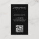 Cartão de visita moderno com sua foto sobreposta com sua profissão e seu nome em tipografia ousada e moderna. No verso, adicione seu endereço url do site para criar um código QR digitalizável e personalize com suas informações de contato em uma simples tipografia branca sobre fundo preto.