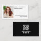 Um simples design apresenta um modelo de cartão de negócios de código QR, com uma fotografia simples, e um estilo profissional moderno, com um código de barras digitalizável para um site ou mídia social, um design de chic minimalista e moderado, com detalhes mínimos de contato, e um fundo branco e preto limpo no verso, um cartão de visita de texto de fotografia.