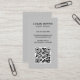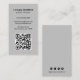 Cartão de visita vertical moderno com um estilo simples e minimalista com o seu Código QR na frente e os ícones das mídias sociais no verso. Todos os elementos de design estão em preto sobre um fundo de cinza leve. Um design simples e mínimo que pode ser personalizado para qualquer profissional de negócios.