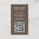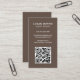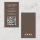 Cartão de visita vertical moderno com um estilo simples e minimalista com o seu Código QR na frente e os ícones das mídias sociais no verso. Todos os elementos de design estão em branco sobre um fundo castanho. Um design simples e mínimo que pode ser personalizado para qualquer profissional de negócios.