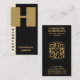 Cartão De Visita Código QR Vertical Mínimo do Monograma Preto Moder