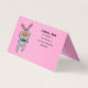 Esta dobra sobre cartão de visita de pé é um rosa vibrante com um coelho branco divertido vestindo uma gravata de arco preto dando um sinal de polegar para cima com bochechas rosadas e nariz laranja. Personalize todas as suas informações na frente, na parte traseira e na dentro com os modelos.