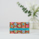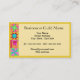 Faça uma impressão com este cartão de visita para seu negócio de colcha, compro ou culpa. Coordenar com um cartão de visita correspondente. Esta cartão de visita apresenta um design de bloco de colcha baseado na arte original de Phyllis Dobbs. O design apresenta blocos de manta de retalhos favoritos, como uma cabana de madeira, giro, estrela e blocos únicos criados em cores vibrantes e dinâmicas em um fundo castanho quente. As cores são cor-de-rosa, laranja, azul-turquesa, amarelo, vermelho, castanho e verde. Totalmente personalizável para todas as suas informações de negócios e de contato.