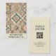 Promova seu negócio de roupas ou artesanatos feitos à mão com este charmoso cartão de visita verde e rosado, cor-de-rosa, com um design acolhedor inspirado em manta e delicados sotaques florais de aquarela. Perfeito para costureiras, hobbyistas e criadores feitos à mão, com espaço para um código QR ligar facilmente seu compro online. Ideal para primavera, verão, outono e mercados ou ramos de outono.