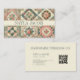 Promova seu negócio de roupas ou artesanatos feitos à mão com este charmoso cartão de visita verde e rosado, cor-de-rosa, com um design acolhedor inspirado em manta e delicados sotaques florais de aquarela. Perfeito para costureiras, hobbyistas e criadores feitos à mão, com espaço para um código QR ligar facilmente seu compro online. Ideal para primavera, verão, outono e mercados ou ramos de outono.