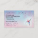 Um design influenciado asiático faz um efeito reconfortante maravilhoso para um salão de beleza, uns termas ou um negócio dos cuidados pessoais. Os ramos de uma árvore da flor de cerejeira esticam sobre um fundo cor-de-rosa e azure macio neste cartão de visita. Um colibri com o mesmo design floral veio inspecionar as flores. A informação principal do negócio imprime na parte dianteira com o volume da informações de contacto no reverso. Disponível com produtos de harmonização.