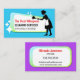 © Socialite Designs. Channeling the bold charm of the swinging '60s, this cleaning services business card bursts with color, character, and a touch of sparkle. The front features a cheerful maid dusting, with whimsical sparkles that say "spotless magic." A vintage-style banner frames your business name in true retro flair, while the reverse side carries that nostalgic vibe forward—perfect for residential or commercial cleaning pros who want to leave a memorable impression. Ideal for branding that’s bold, fun, and totally unforgettable. Colors can be changed to suit your brand.