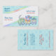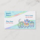 Adorável Cartão de visita apresenta um trem de brinquedo com um bebezinho feliz cavalgando nele. Acentos arco-íris e fundo aqua ligeiramente pontilhado. Padrão correspondente na parte traseira da placa. Texto em frente e verso pronto para personalizar com suas informações. Este cartão funcionaria bem para qualquer negócio relacionado a crianças, por exemplo, creche, babá ou boutique.