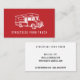A ilustração da Trendy Comida Truck, cartões de visitas profissionais. O contorno do caminhão de comida branca sobre fundo vermelho. O estilo da fonte de texto e a cor do plano de fundo podem ser personalizados.