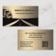 This distinctive business card is designed for a commercial trucker or someone in the transport industry. It includes black truck and highway images on a gold background, along with your name and title on the front. On the back, there are two sections for contact details. You can easily fill in the text template with your details or click Customize to further adapt the card to your needs. The card has a simulated brushed metal effect but is printed on regular paper and contains no metal or foil.