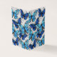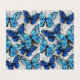 Composição vertical de borboletas de morfo realistas, azuis e brancas sobre fundo texturizado de cinzas. Borboleta azul Morpho.