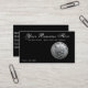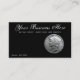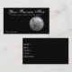 Um cartão de visita preto com um Mercury Dime vintage no canto da placa. Personalize o texto, a fonte e as informações sobre esta adorável quantidade de mercúrio na frente e no verso.