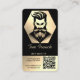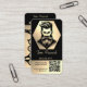 Essa lealdade e Cartão de visita oferecem uma primeira impressão profissional, elegante e de tendências. É composto como descrito abaixo: Frente: logotipo preto e dourado com um homem barbudo com cabelo ondulado, seguido pelo nome pessoal/da sua empresa, número de telefone, detalhes de contato e um código QR para fácil acesso ao site. Back: Seu nome e tipo de negócio, 10 tesouras para selos de fidelidade. O último tem uma etiqueta "GRATUITA" que você também pode personalizar se preferir uma porcentagem de desconto, por exemplo.