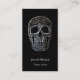 A tatuagem profissional gótica que brilha na cabeça do crânio Compra cartões de visitas verticais. Saia com este design preto-e-branco, tendências, legal, assustador, assustador, assustador, moderno e personalizado. Imagem copyright Marg Seregelyi Fotografia.