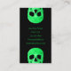Cabeça de crânio Gótico, design de textura criativa negra verde neon neon. Tatuador vê cartões de visitas profissionais verticais. Estilo de vintagem impressionante, moderno, legal, moderno e assustador. Imagem copyright Marg Seregelyi Fotografia.