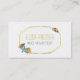 Cartões de visitas femininas lindas, azuis e beige, com conchas de cor d'água e um quadro de polígono de folha de ouro com seu texto.