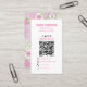 Este cartão de visita profissional de excelente com um moderno design profissional minimalista, um profissional cor-de-rosa que se liga conosco, com o site de código QR das mídias sociais, Instagram Facebook Pinterest, um ícone de email de celular online, um pré-disquete feminino feminina, um padrão de impressão uniforme flores florais, com um moderno e simples cartões de visitas, um freelancer consultor, um nome personalizado simplista, um na moda tradicional texto negrito