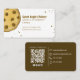 Um simples design apresenta um cartão de visita de temas para padeiros de padaria com um código QR, uma foto das redes sociais, um moderno e simples contemporâneo, para doces de biscoitos de padaria, com o site de e-mail do info de contato, com o Facebook Instagram Pinterest Twitter, um na moda de fotografia pro, um scannable digital básico e elegantemente minimalista, para o compro de restaurantes da comida shoppe boutique , restauração e pequenas empresas