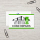 O cobrir apresenta um prédio criativo no telhado que incorpora ferramentas de construção de mão de obra. O pilar verde da construção é acentuado por ter faixas verdes nas extremidades superior e inferior da carta. Cada ferramenta representa algum do serviço que você pode oferecer, por exemplo, a fita-medida do martelo pode representar obras de remodelação, a escada-de-pincel para pintura, a chave-gota de água para canalizações e a lâmpada para serviço elétrico. Abaixo de tudo isso está o nome comercial "REPARAÇÕES DOMÉSTICAS" que você pode alterar. No verso, em um cobrir branco, no topo está o logotipo colorido do martelo doméstico que você pode usar. A isto segue-se o seu nome prestigiado, os seus dados de contato e uma opção de slogan para divulgar os seus serviços. Um cartão criativo de excelente para o homem de mão, empresas de construção. #handyman #constuctionhandyman #homerepaircontratante #construcder #remodelder #handymantools #buildingcontratante #homerepair #interiordesign#telhado #telhador #telhador #telhador #empreiteiro #zazzlemade