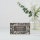 Design apresenta um cobrir de parede de pedra. No centro há uma coluna marrom que contém todos os detalhes do cartão. No topo está o seu nome, cargo e contatos.